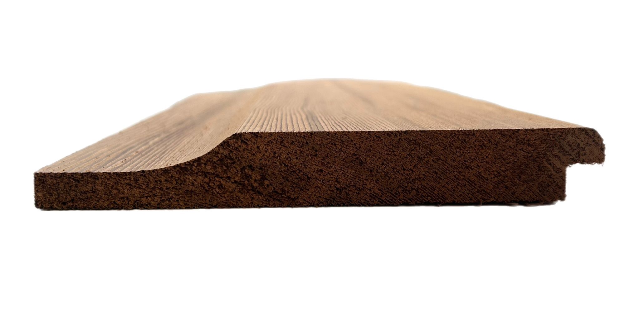 Manufactured to Timber Focus Profile TF46, this cladding features a rebated shiplap design with a gentle scalloped face, offering a refined appearance and reliable weather protection. The design makes it ideal for horizontal cladding installations, providing a professional, contemporary finish with timeless natural character.
